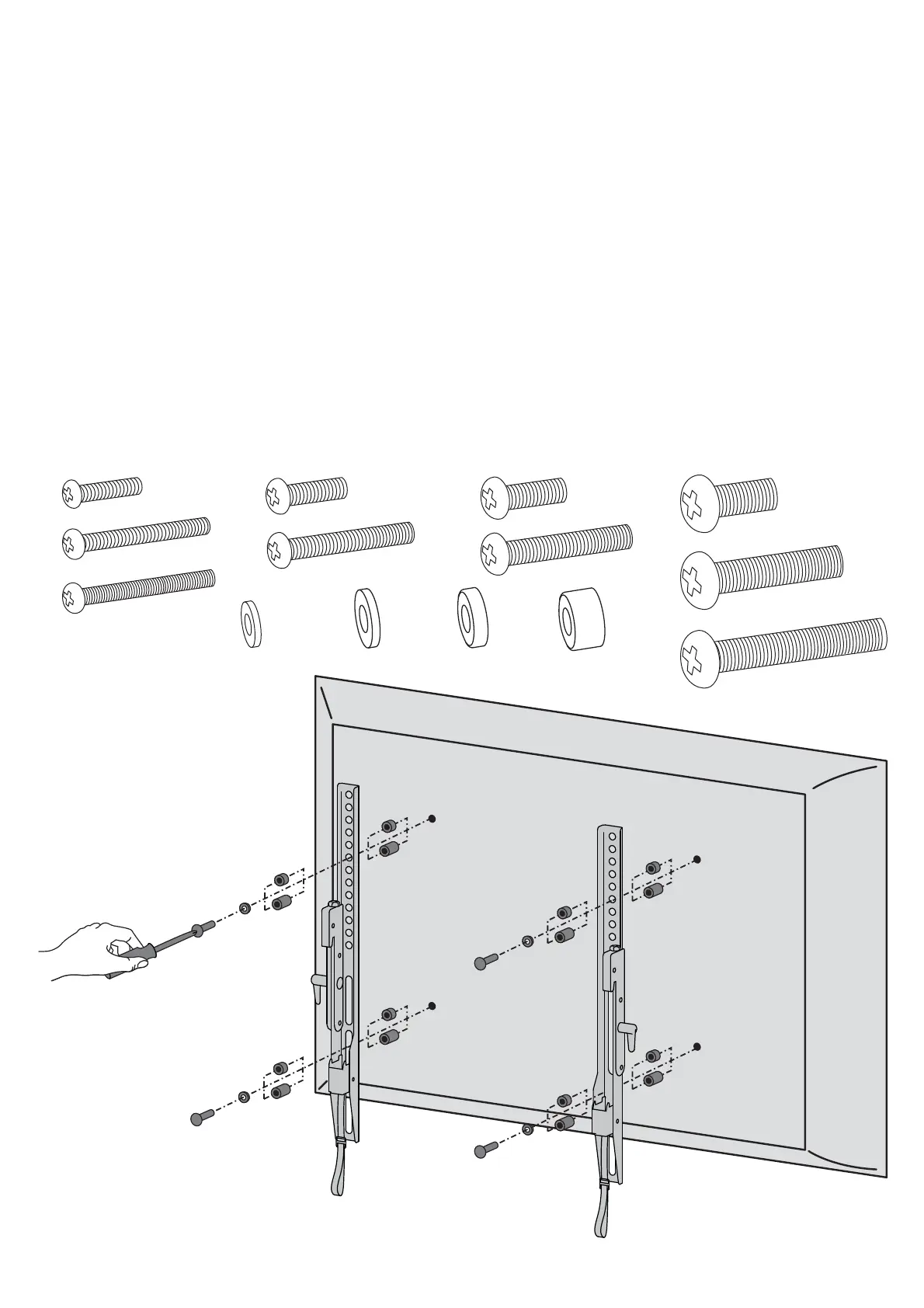 Find the one size screw that fi ts your TV. You will use the 4 screws of that size.