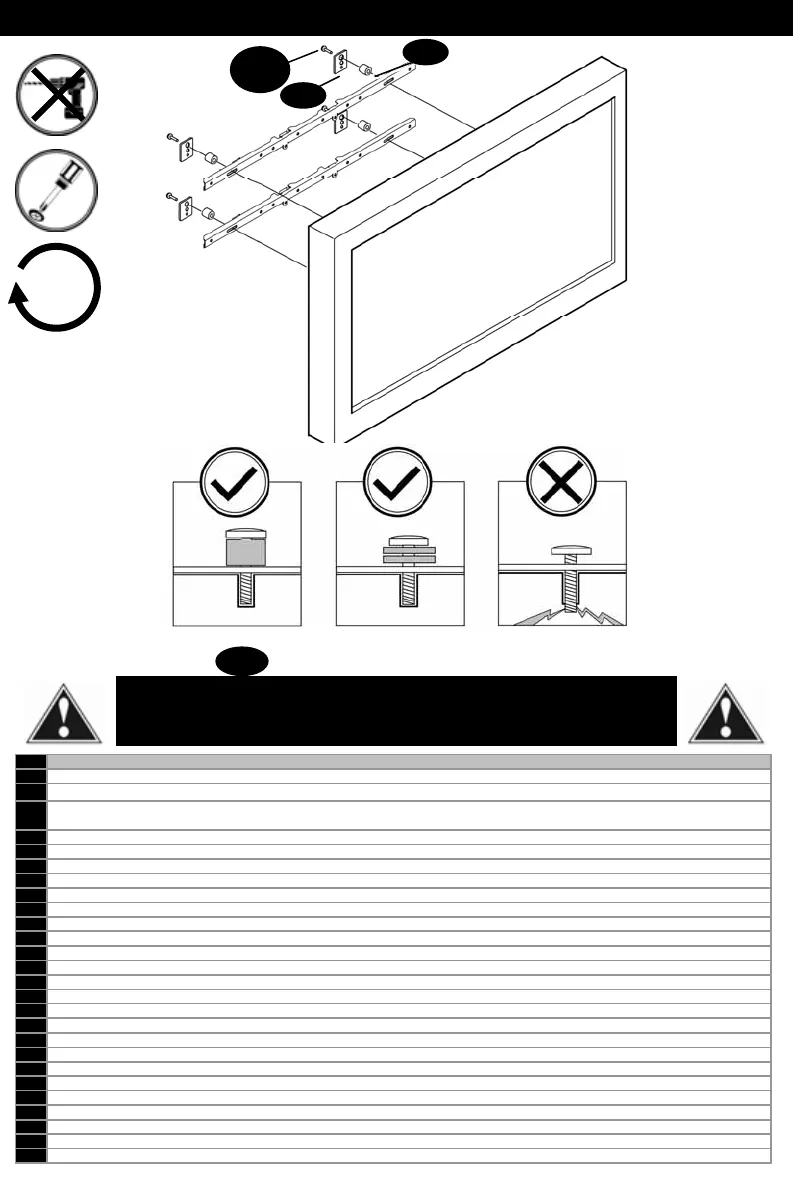 WHEN INSTALLING FLAT PANEL TV DO NOT OVER TIGHTEN SCREWS AND