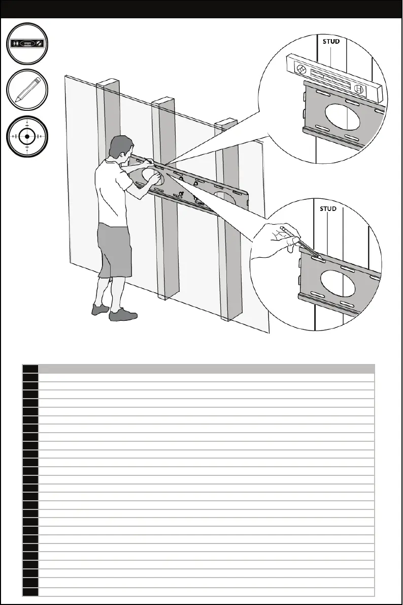 Użyj płyty ściennej lub szablonu ściennego do oznaczenia punktów montażu