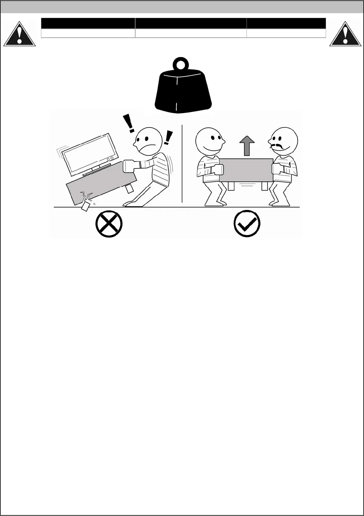 JEI NAUDOJAMA SU PLOKŠČIAISIAIS VAIZDUOKLIAIS, KURIŲ SVORIS VIRŠIJA MAKSIMALŲ ŠIO GAMINIO ATLAIKOMĄ SVORĮ, GAMINYS GALI SUGESTI. DĖL TO GALI BŪTI SUŽALOTI ŽMONĖS ARBA