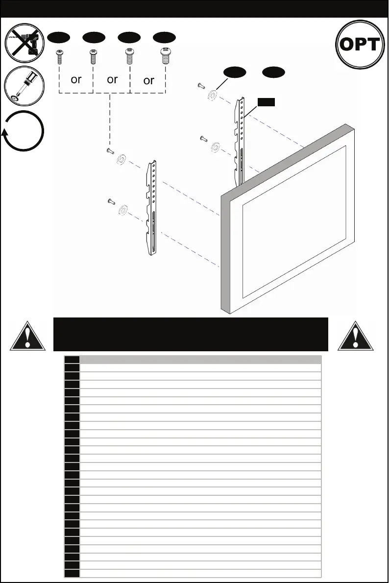 WHEN INSTALLING FLAT PANEL TV DO NOT OVER TIGHTEN SCREWS AND MAKE