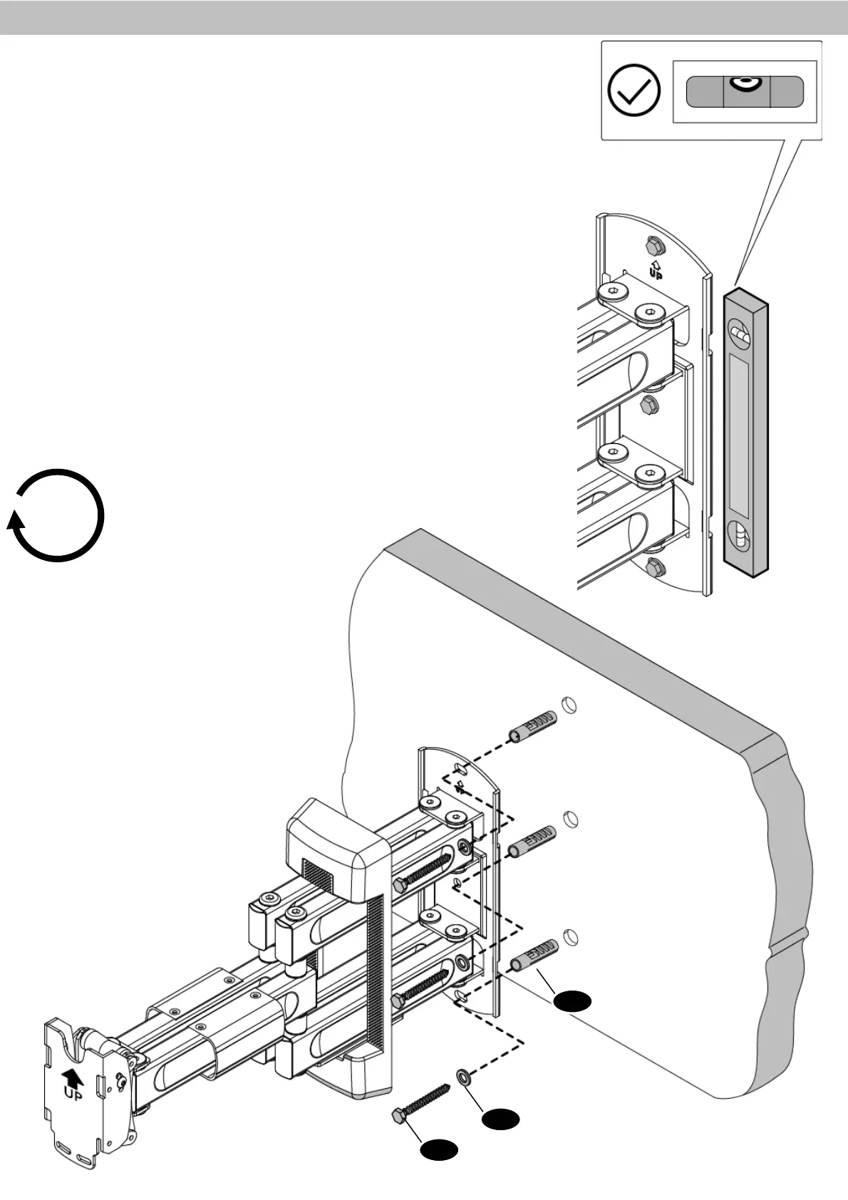 ウォールプレート/アームアセンブリーをコンクリート壁に取り付けて、水平にします
