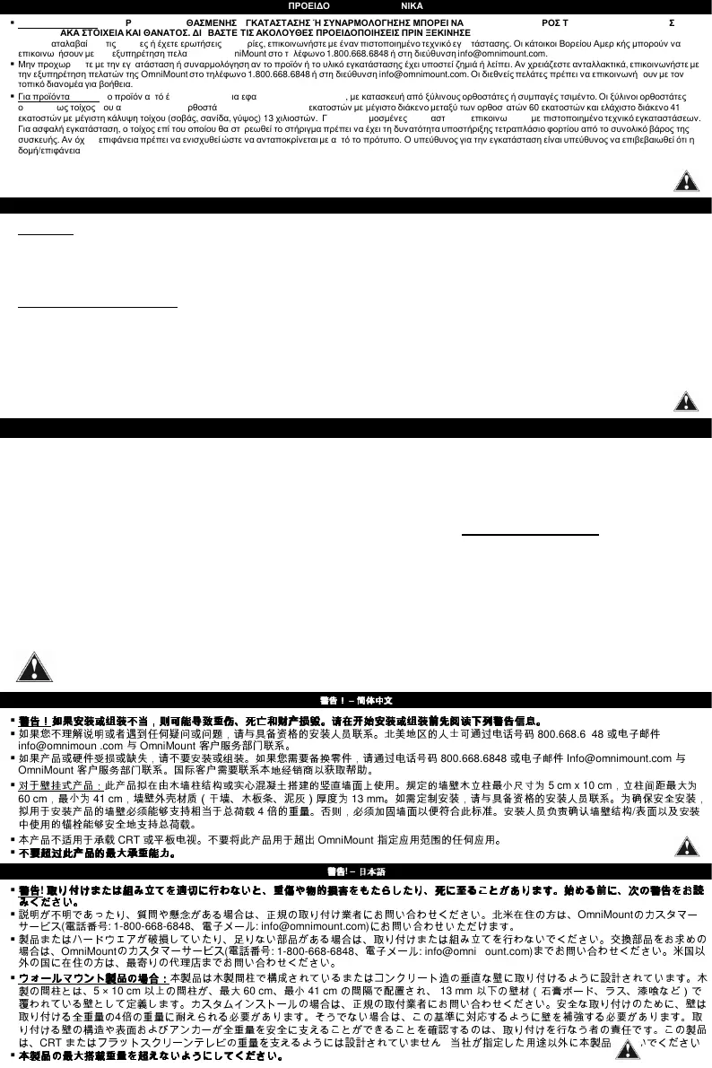 την εξυπηρέτηση πελατών της OmniMount στο τηλέφωνο 1.800.668.6848 ή στη διεύθυνση info@omnimount.com. Οι διεθνείς πελάτες πρέπει να επικοινωνήσουν µε τον