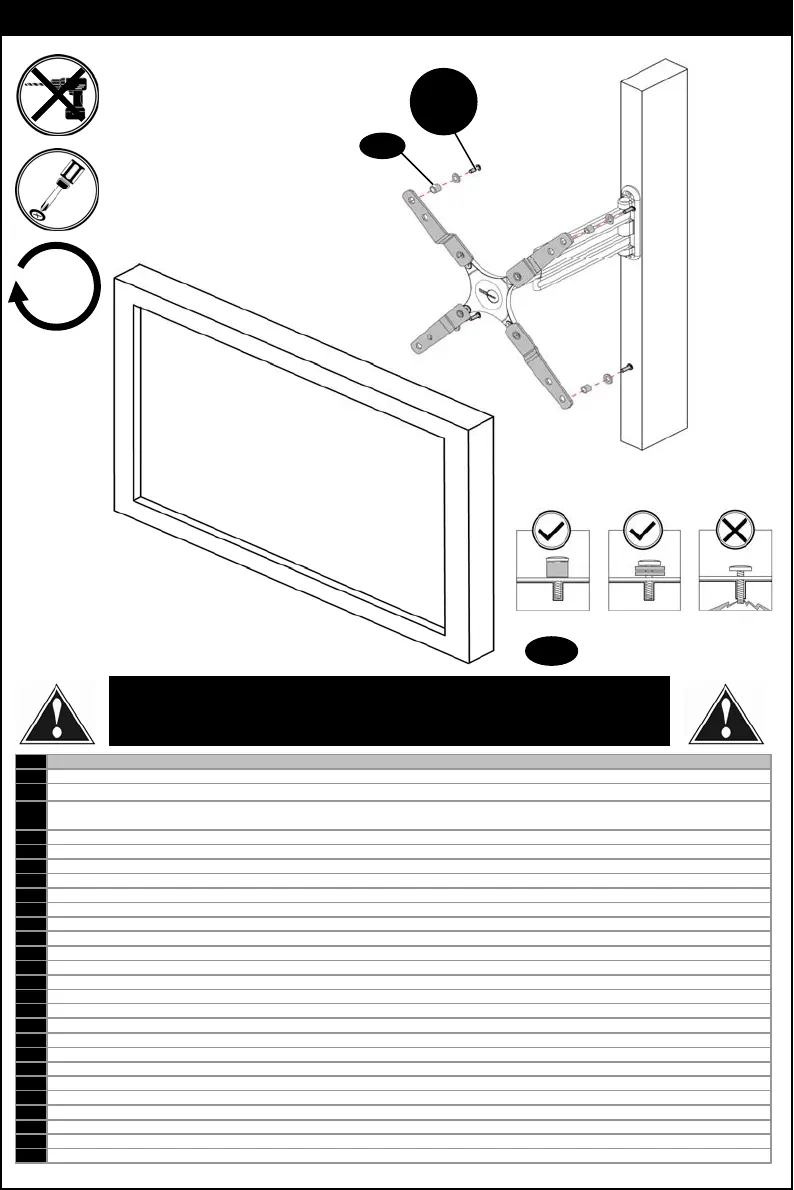 WHEN INSTALLING FLAT PANEL TV DO NOT OVER TIGHTEN SCREWS AND