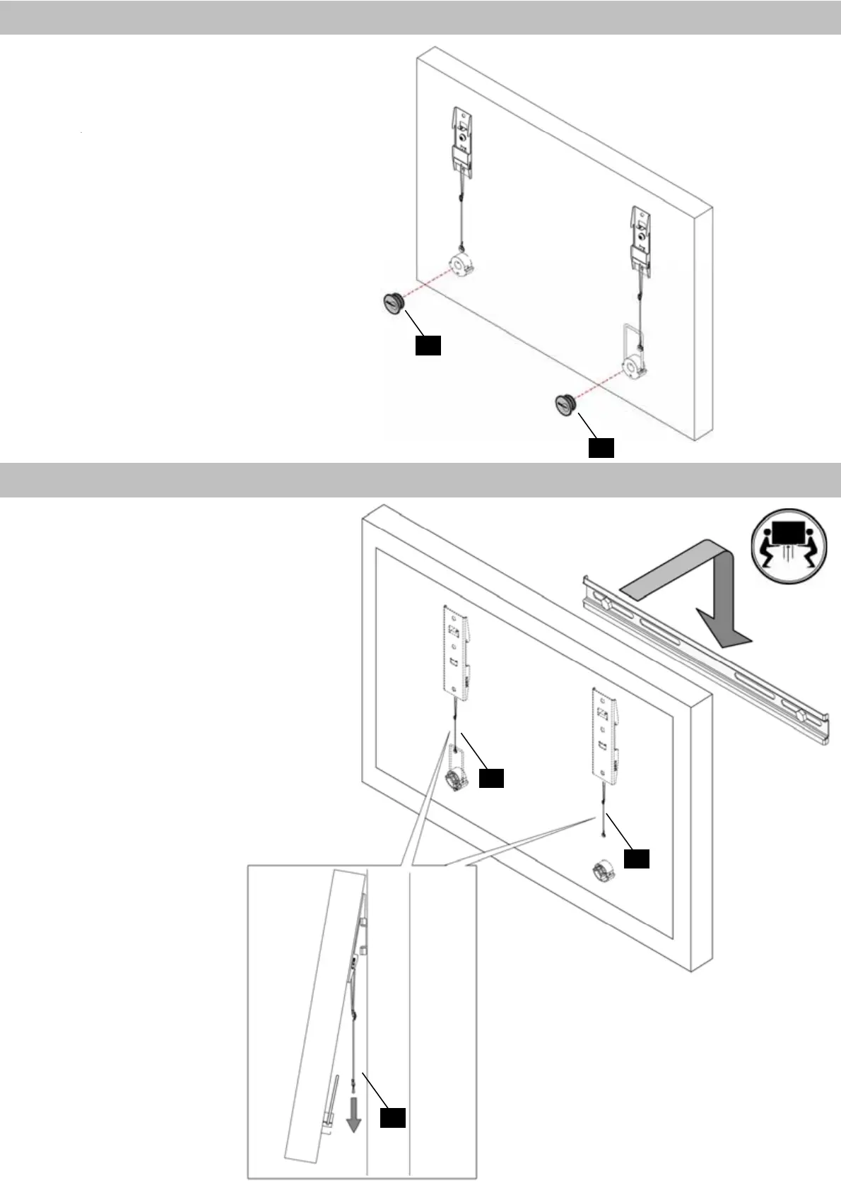 Mit dem befestigten Monitor aufhängen.