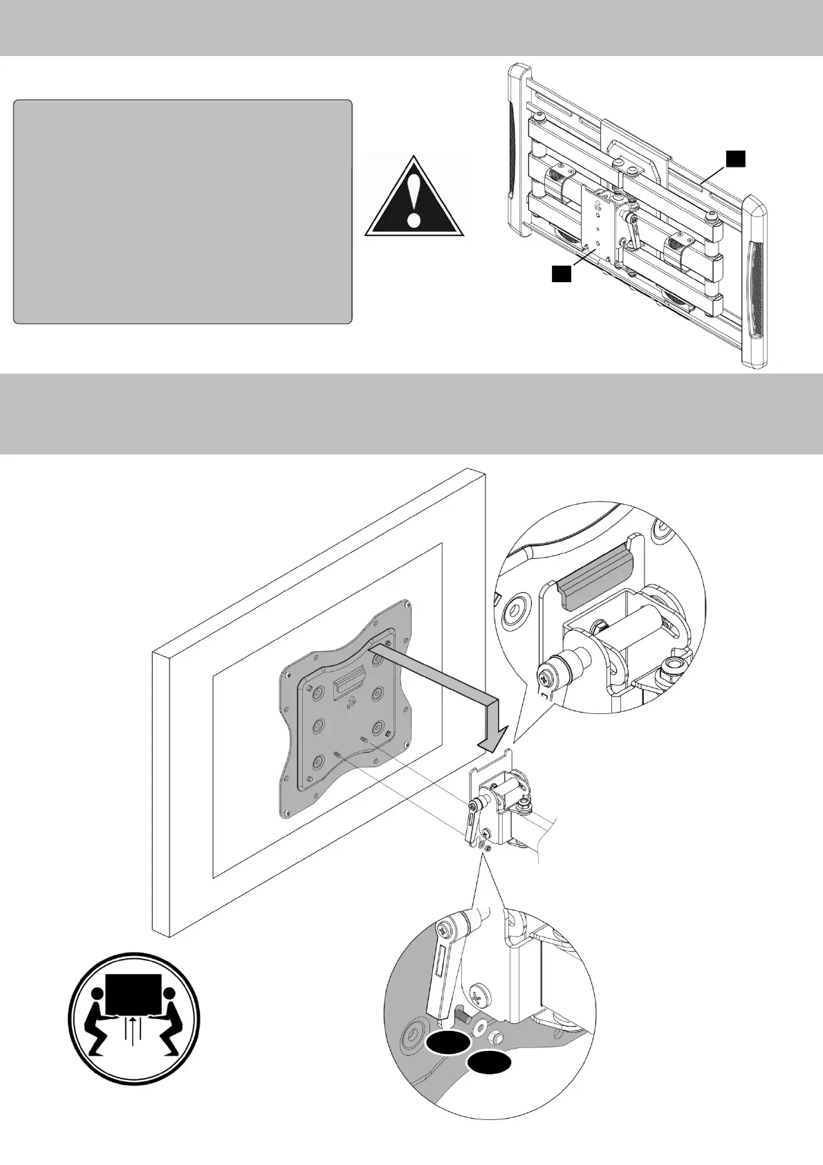 STEP 15.B: LIFT AND LOCK FLAT PANEL ONTO ARM ASSEMBLY (PART #2). TIGHTEN HARDWARE (PART #