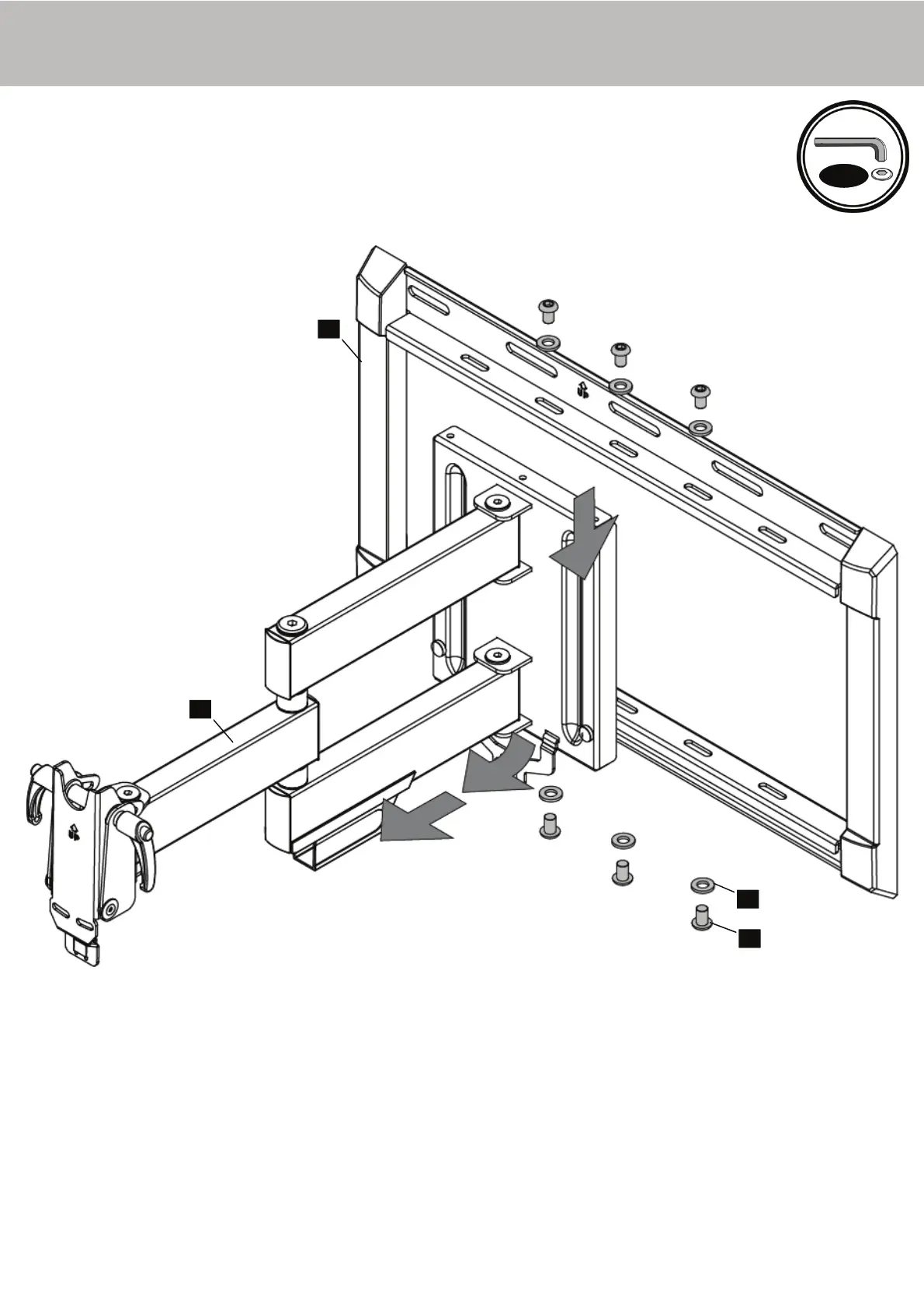 STEP 12: Remove arm assembly (Part #2) from wall plate (Part #1). Set hardware aside for later installation.