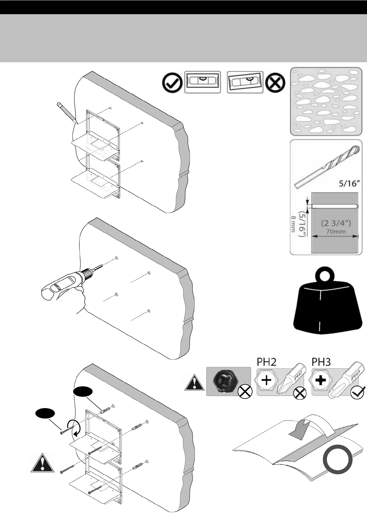 STEP 6C: Level/mount the wall frame (Part #1) with mounting hardware (Part W-A & W-B).