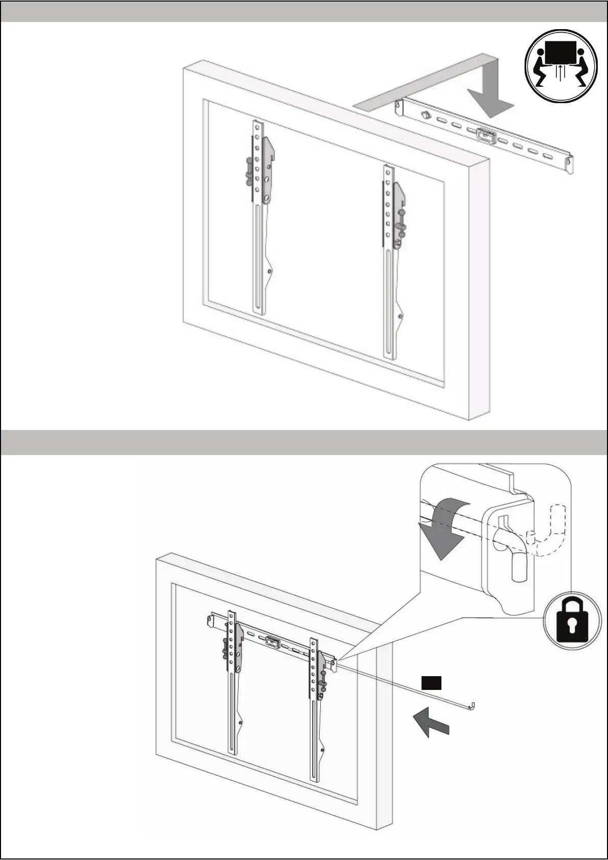 Mit dem befestigten Monitor aufhängen.