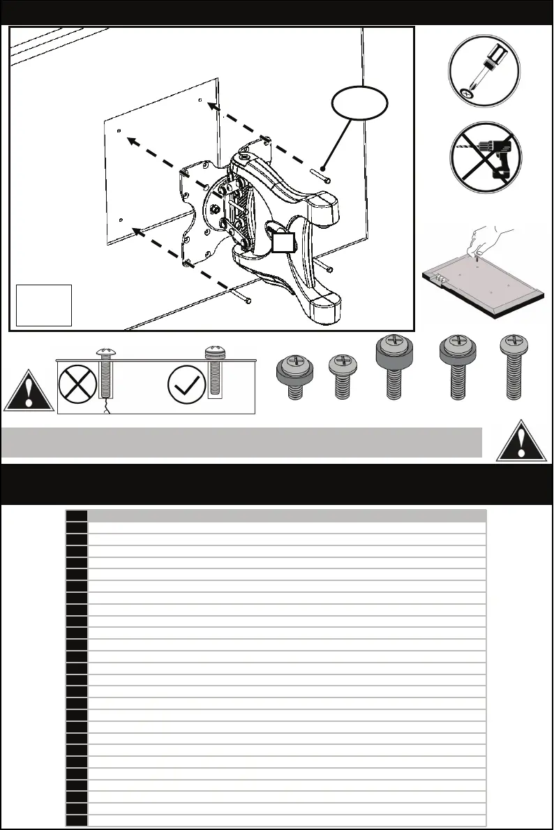 WARNING! PLEASE SELECT THE PROPER SCREW LENGTH FOR YOUR FLAT PANEL