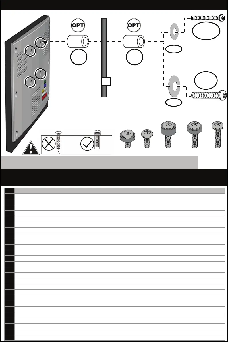 WARNING! PLEASE SELECT THE PROPER SCREW LENGTH FOR YOUR FLAT PANEL