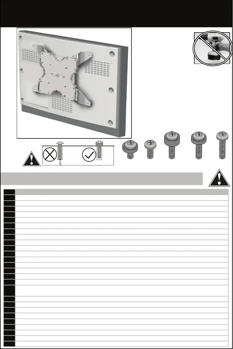 WARNING! PLEASE SELECT THE PROPER SCREW LENGTH FOR YOUR FLAT PANEL