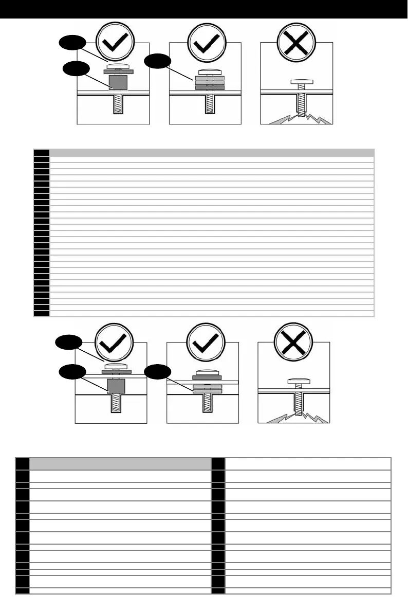 Atenção: Se o parafuso "bater no fundo" utilize anilhas (não incluídas) para remover a folga