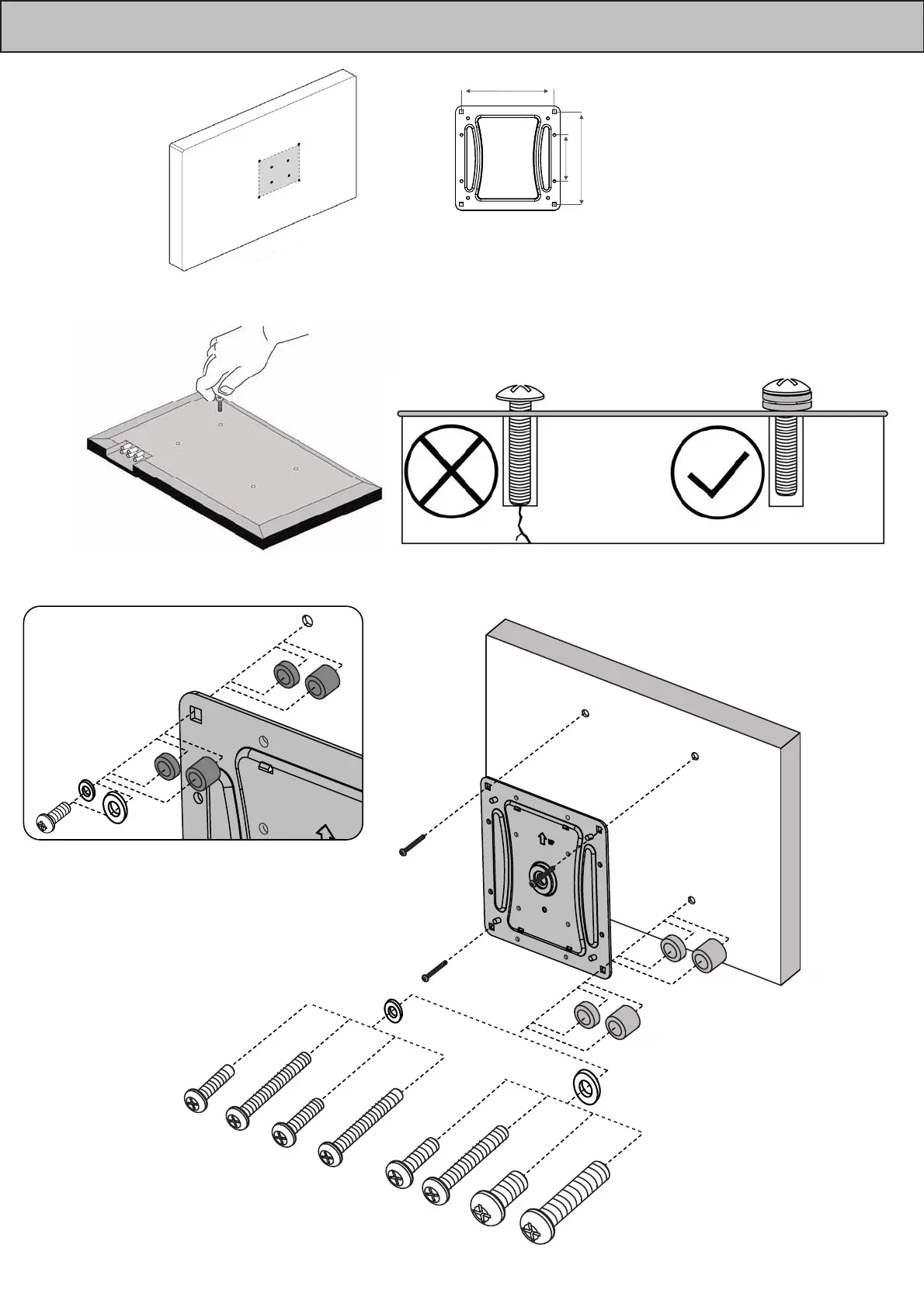 WARNING! PLEASE SELECT THE PROPER SCREW LENGTH FOR YOUR FLAT PANEL