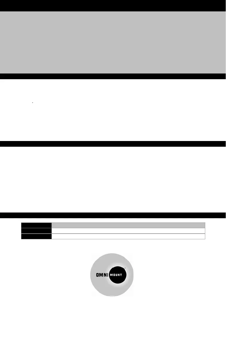 ne respectant pas les limites de charge, ou du non-respect des directives d’entretien fournies par OmniMount. Sous réserve des lois en vigueur, OmniMount réfute toute autre