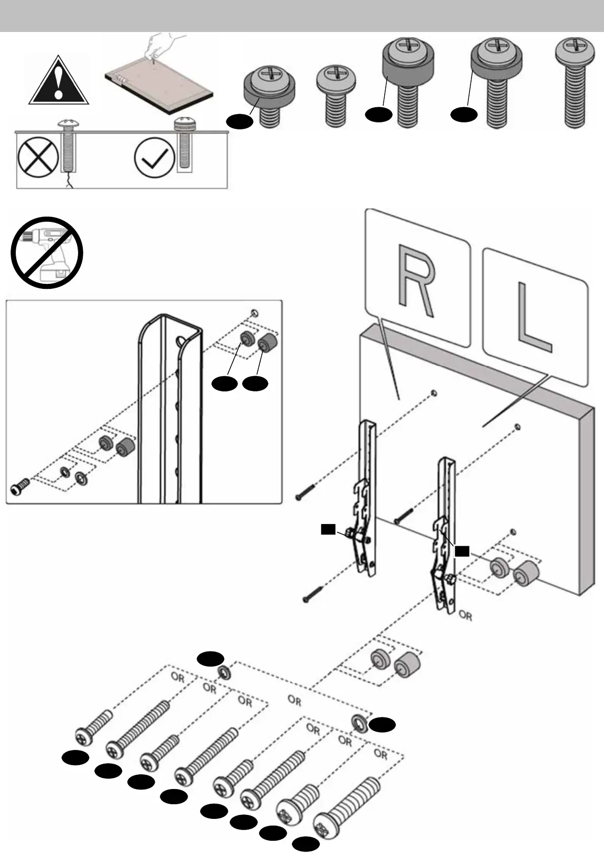PASO 7 - Coloque la pantalla utilizando los materiales de instalación de la pantalla, M-A, M-B, etc…