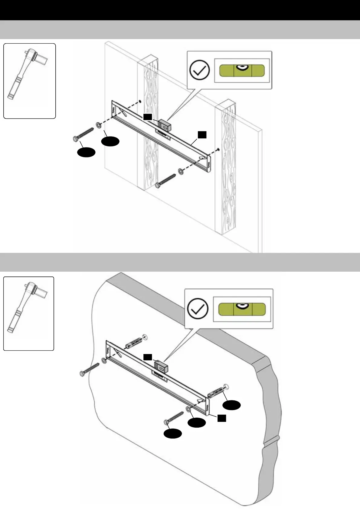 STEP 8 – OPTION B: Mount wall plate (Part #1) to solid concrete and level using stud finder/level (Part #7).