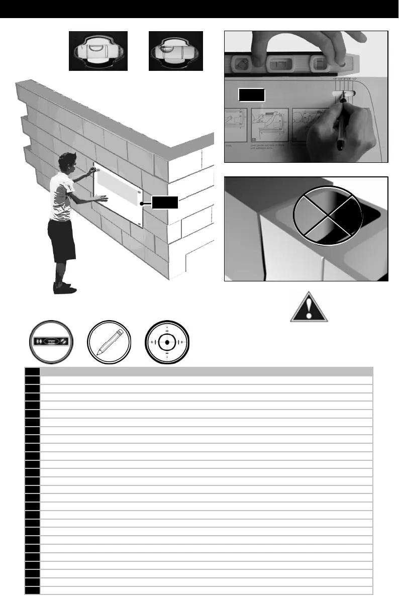 Wandplaat of wandsjabloon gebruiken om de montageplaatsen af te tekenen