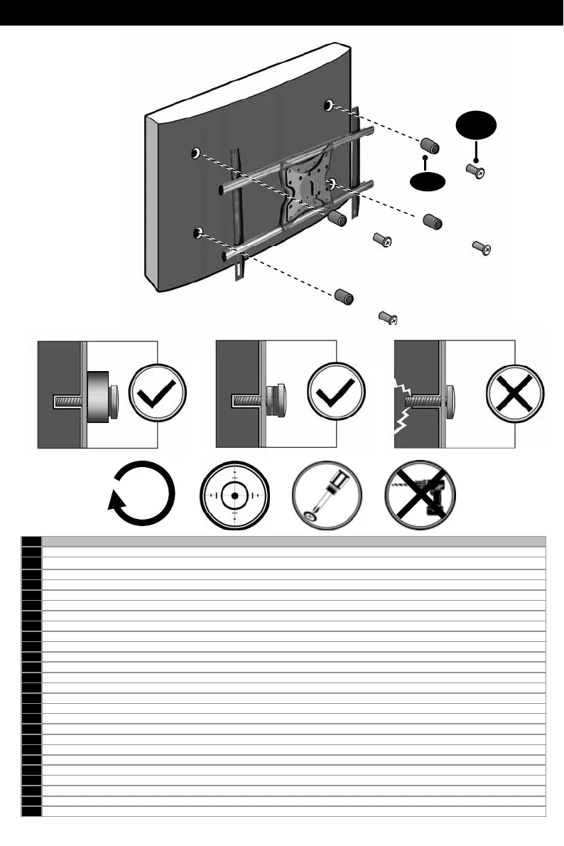DE Achtung: Falls sich die Schraube „eingräbt“, verwenden Sie Unterlegscheiben (nicht im Lieferumfang enthalten), um die Schraubenkraft auf eine größere