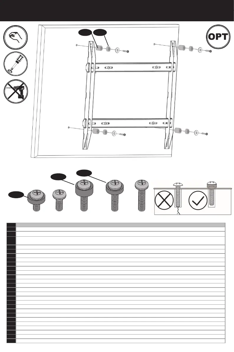 Upozornenie: V prípade, že je skrutka príliš dlhá, použite podložky (nie sú súčasťou balenia).
