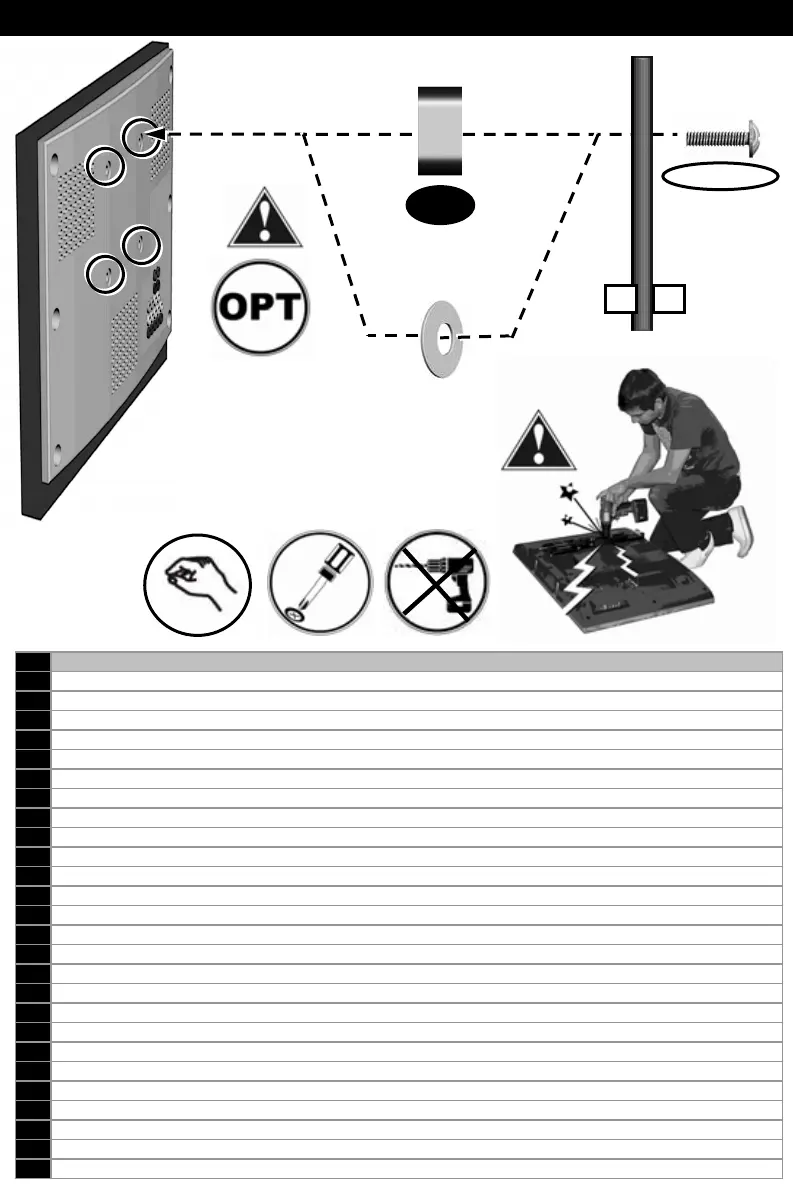 PL Użyj dystansów w przypadku otworów montażowych lub w celu uzyskania dostępu do wejść A/V