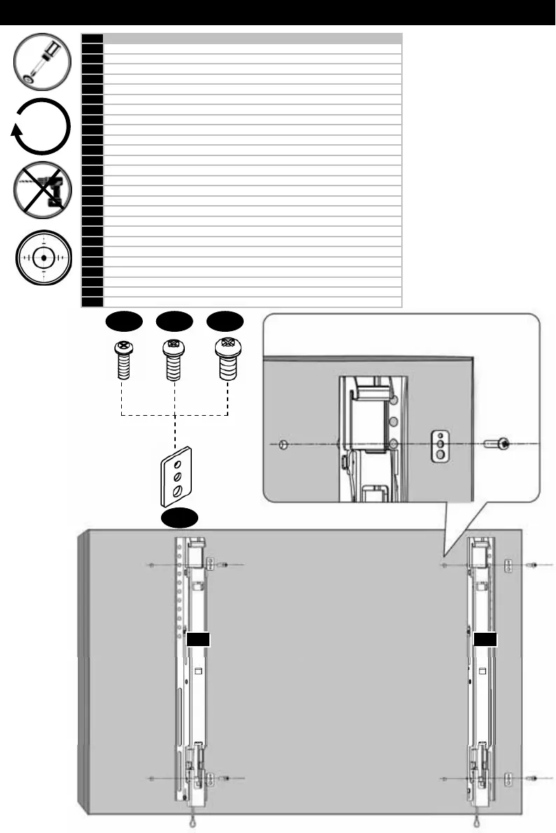 Coloque la pantalla utilizando los materiales de instalación de la pantalla, M-A, M-B, etc…