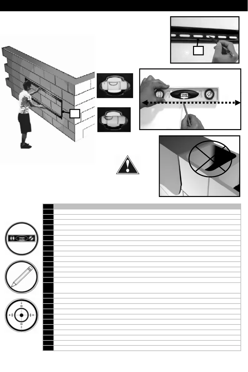 Uyj pyty ciennej lub szablonu ciennego do oznaczenia punktów montau