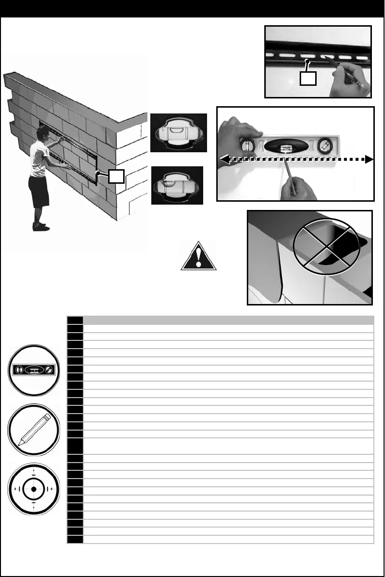 Utilisez la plaque ou le gabarit mural pour marquer les emplacements de montage