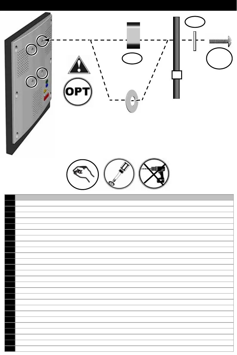 FR Utilisez les entretoises sur les trous de montage encastrés ou pour accéder aux entrées A/V