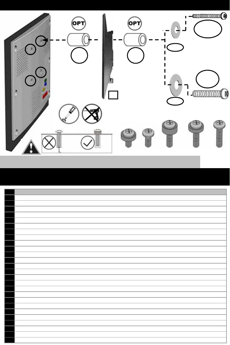 WARNING! PLEASE SELECT THE PROPER SCREW LENGTH FOR YOUR FLAT PANEL