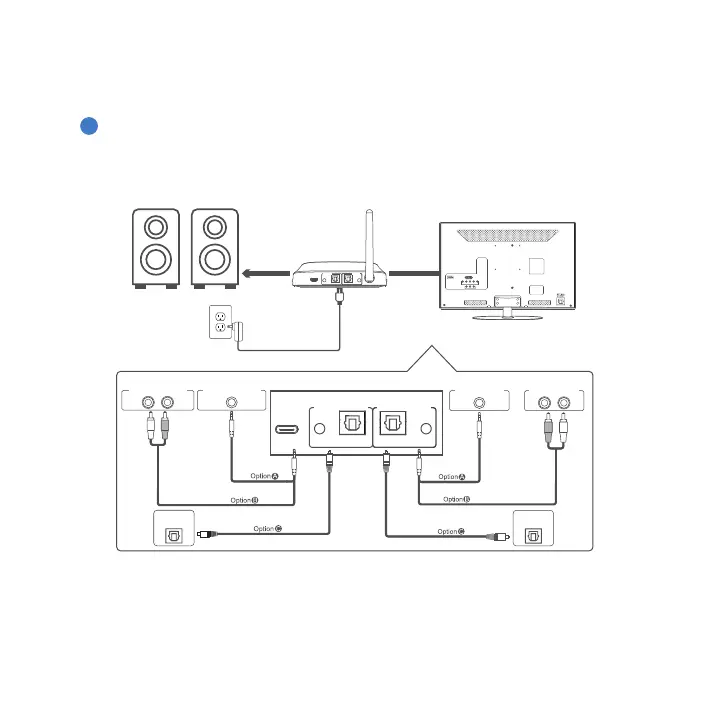 Connect the audio adapter to a power source (TV or power adapter) with the USB