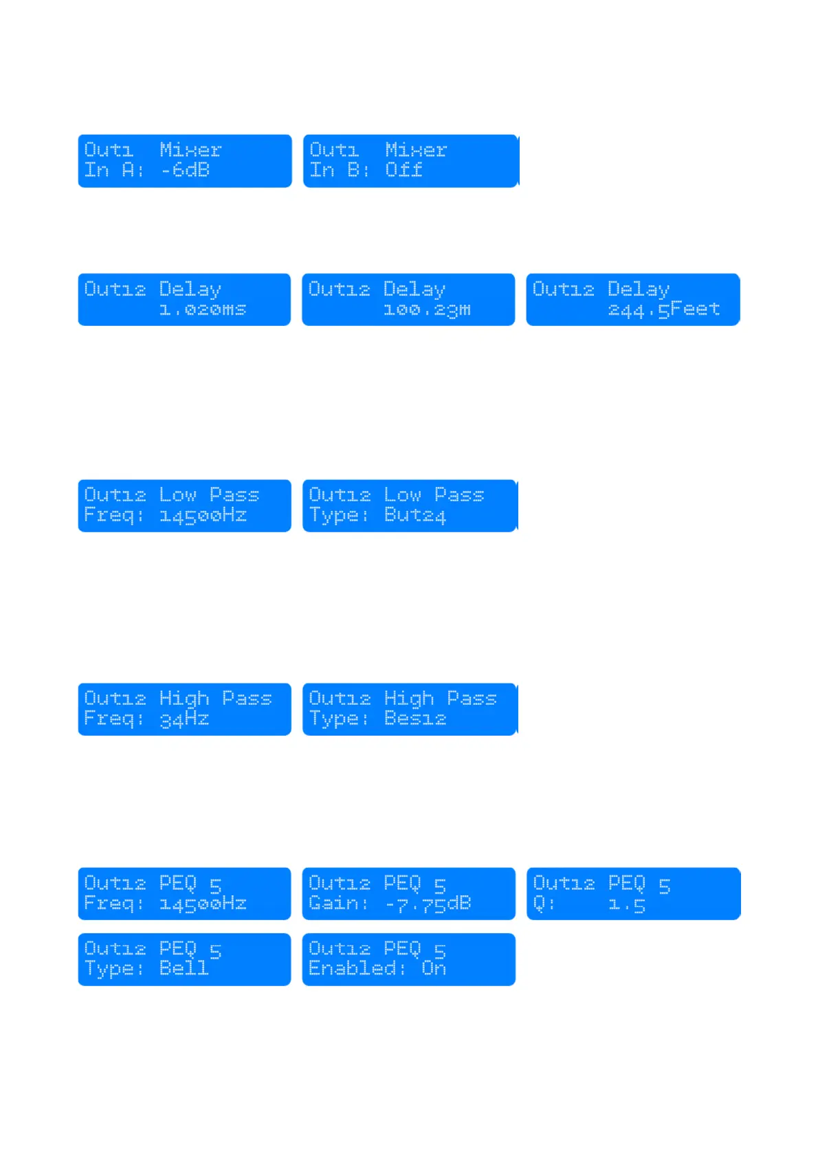 Bessel 18dB, Butterworth 24dB and Bessel 24dB. Higher order filters may be set by adding filter sections in