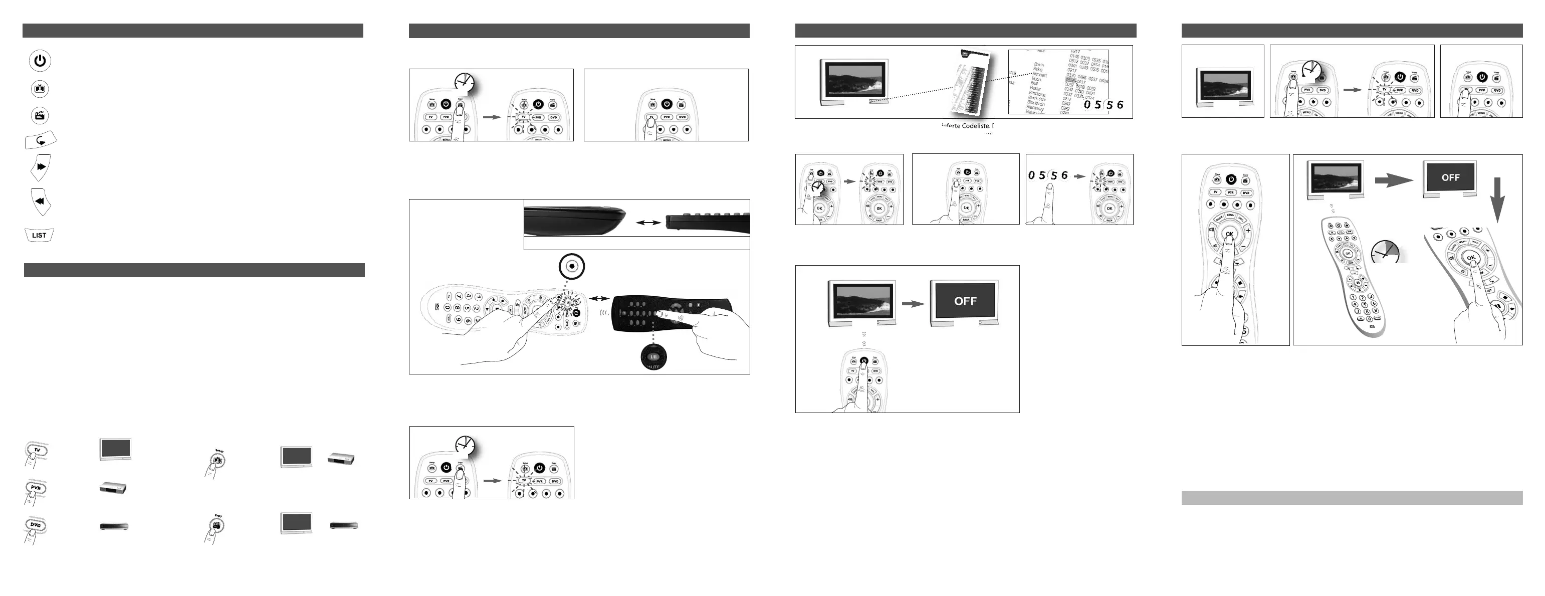 1. Suchen Sie den Code für das Gerät in der mitgelieferte Codeliste. Die Codes sind nach Gerätetyp und Markenname