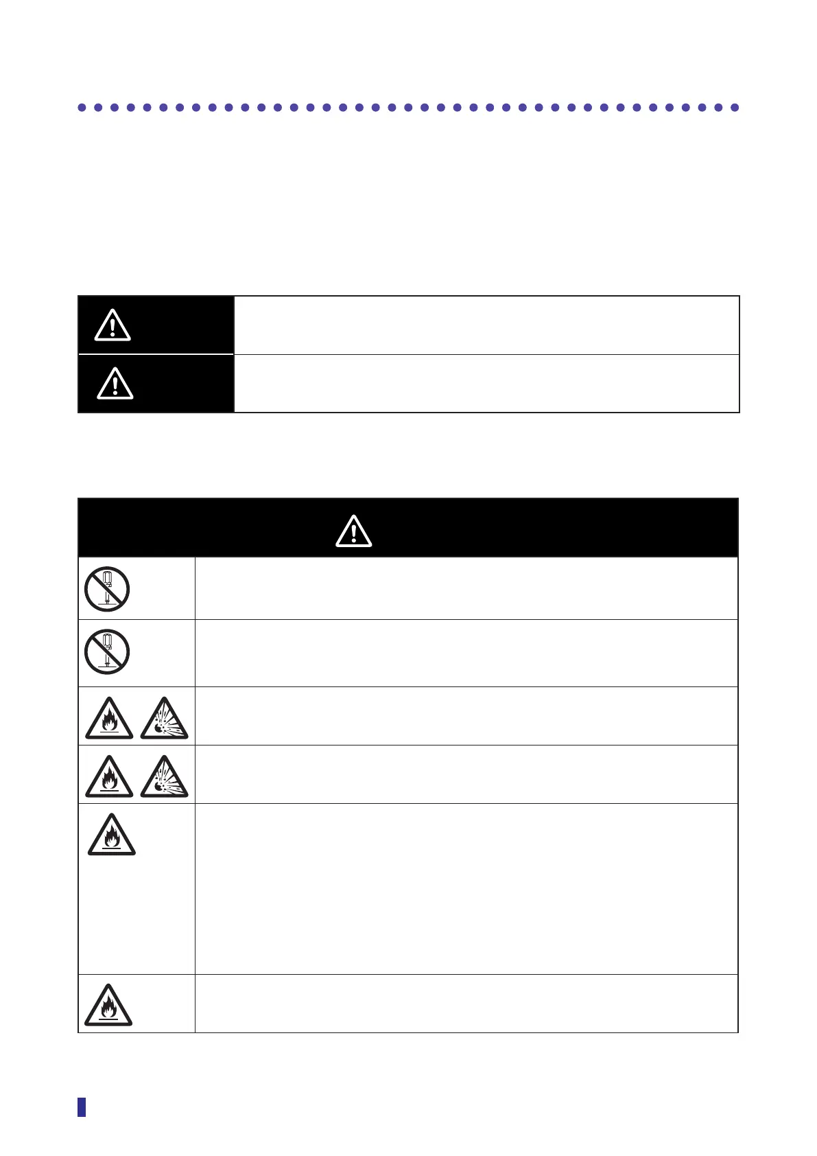 Safety precautions for ensuring safe operation of this product are displayed as follows with the following