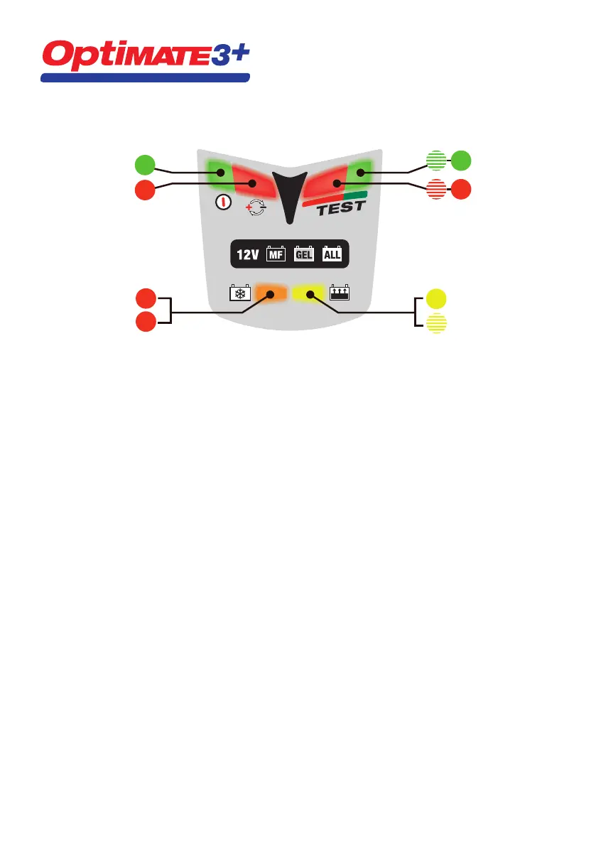 6. If the battery voltage falls below 12,4V during the test LED #6 (red) willcome on & indicate steadily.