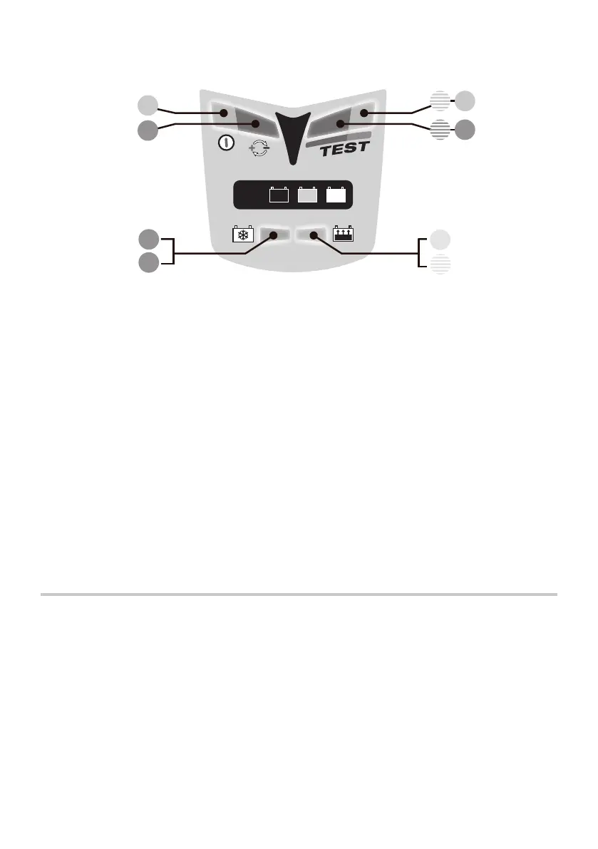 6. La LED # 6 (état fi xe) peut remplacer la # 5 si le voltage de batterie chute durant le test.