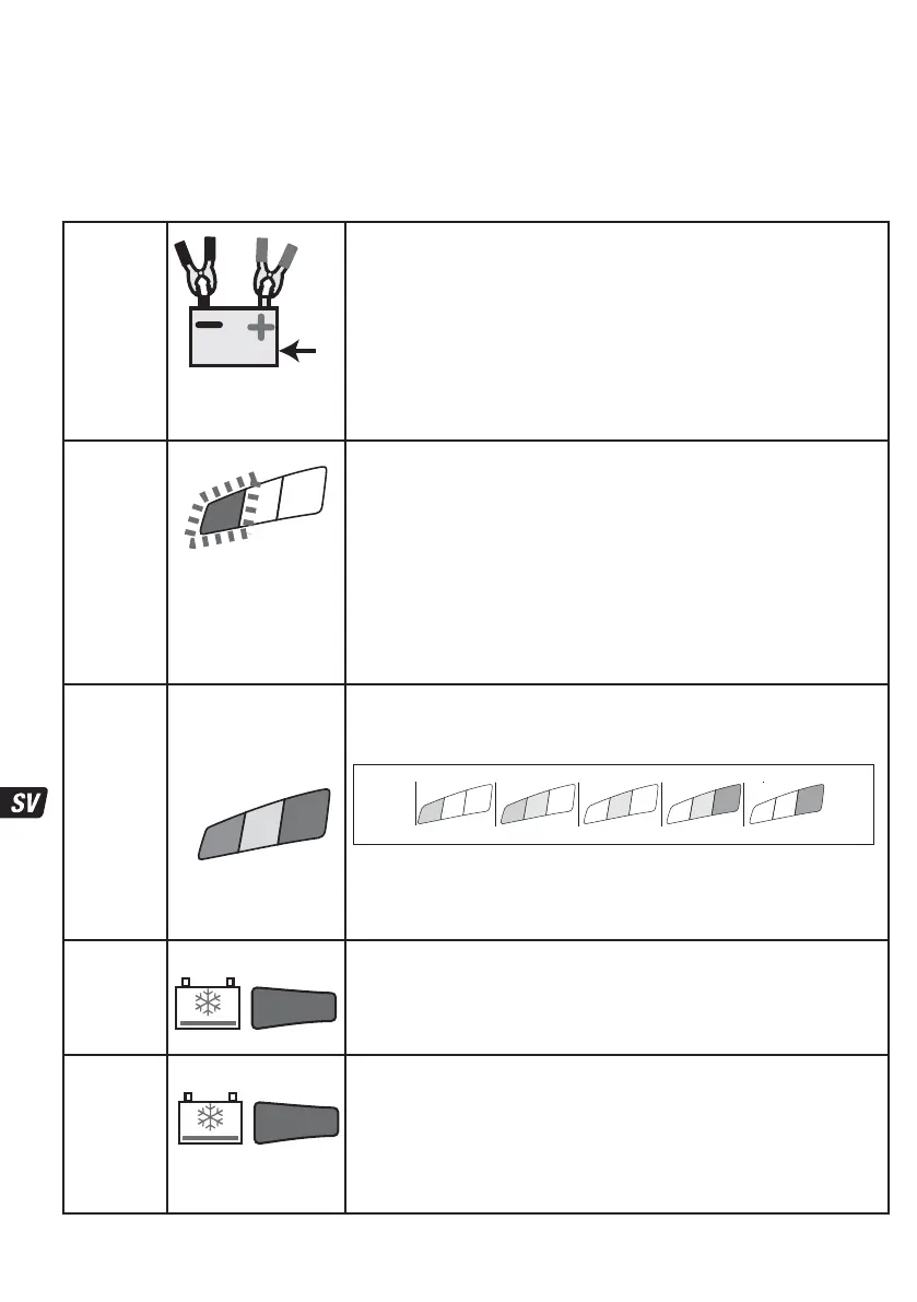 indikerar att batterianslutningarna är felaktiga. Laddaren är skyddad så tillståndet kommer inte resultera i några skador och utgången