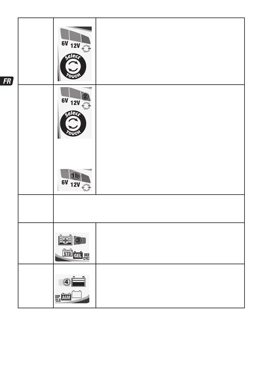 12V (nº 1b) clignotent: 12V est sélectionné et la batterie connecté présent une