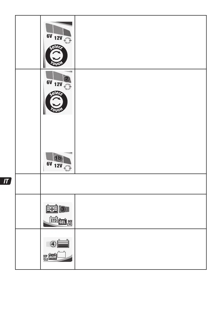 Corrente di carica massima: batteria a 6V => 4A batteria a 12V => 3A.