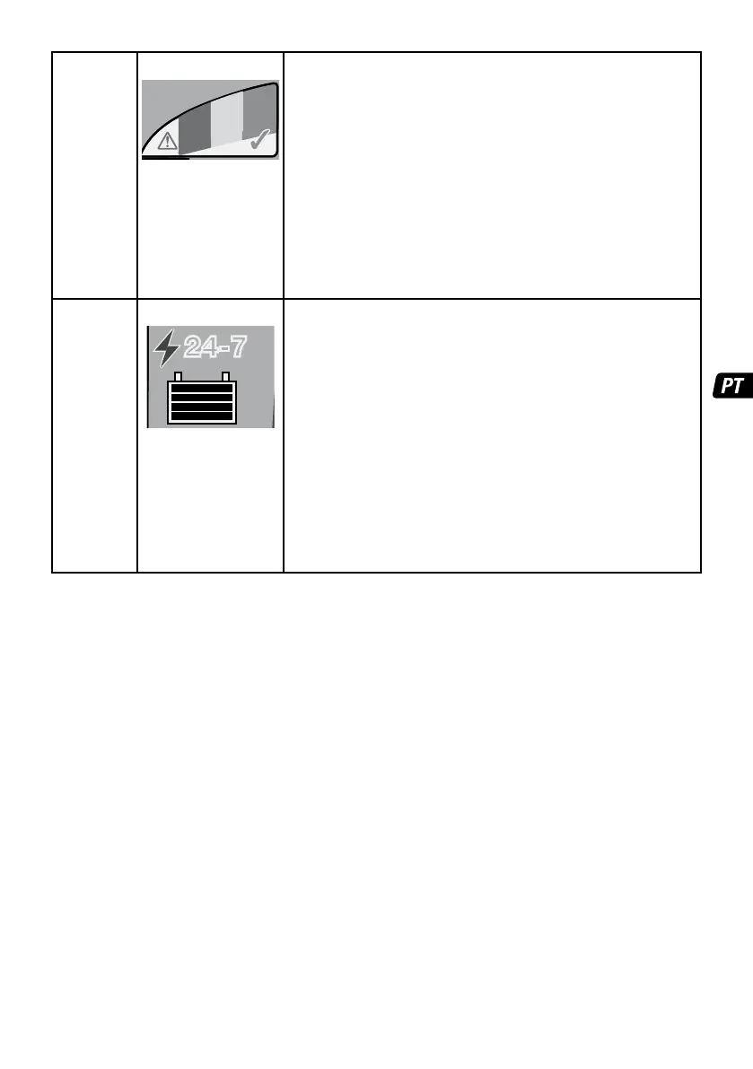 tensão medida da bateria. Consulte o quadro “AVISO ANTECIPADO DE