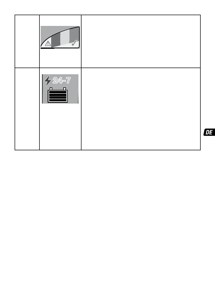 der gemessenen Batteriespannung angepasst. Siehe Tabelle “FRÜHWARNUNG BEI