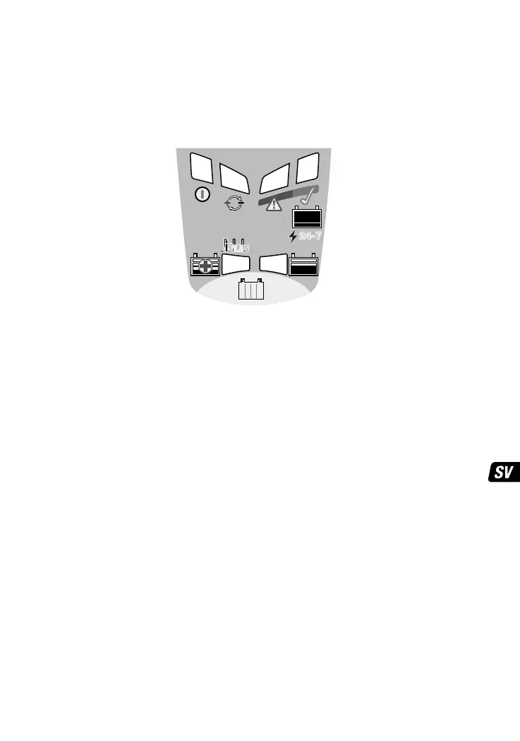 LED 2: SKYDD MOT OMVÄND POLARITET – Lyser om batterianslutningarna är felvända. Laddaren är