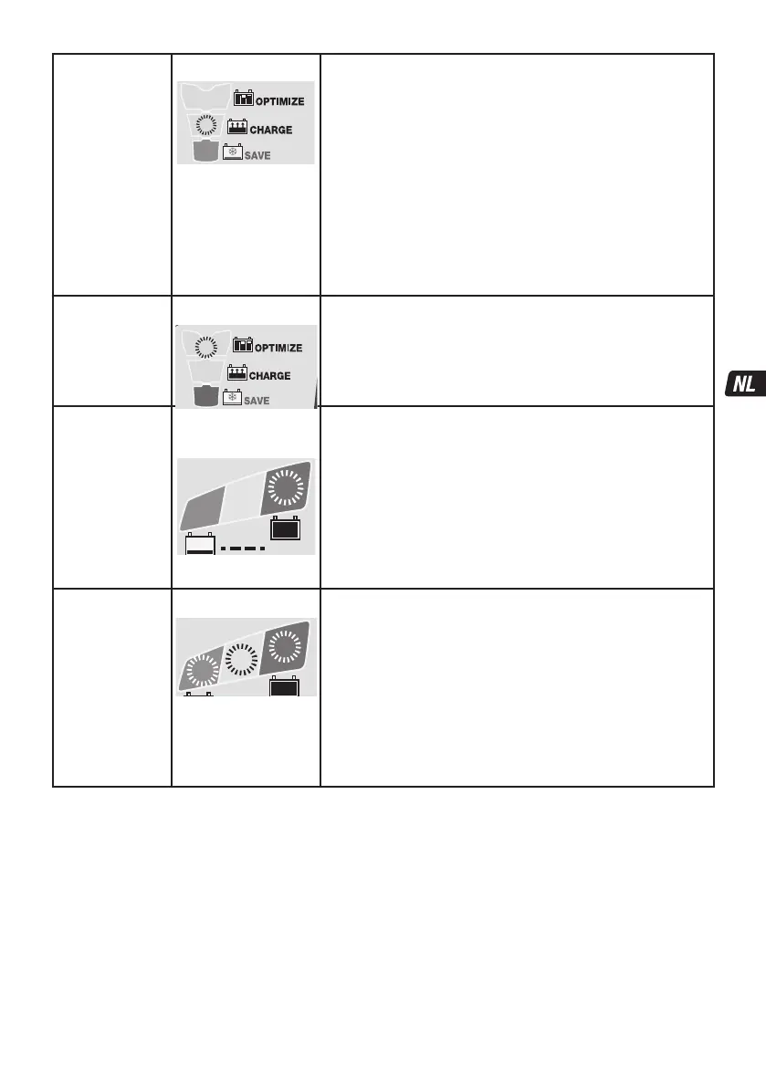 accu), is er sprake van een ernstig probleem. De rode / gele+rode LEDs betekent dat de accuspanning na het laden niet wordt