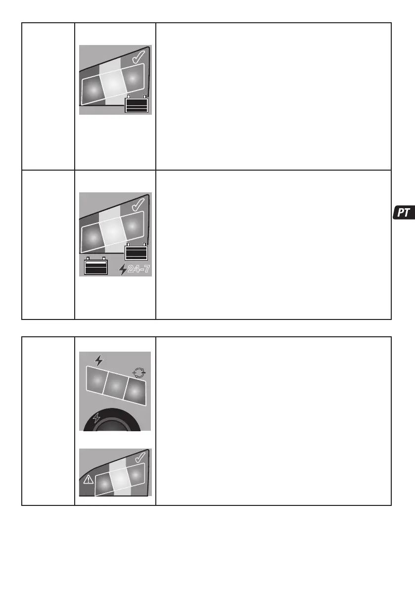 PROBLEMAS COM A BATERIA” na página 2 para obter correspondência entre a