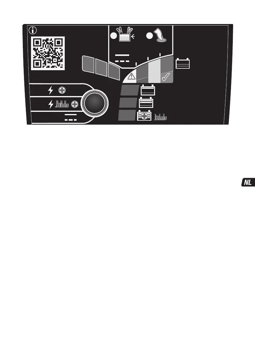 f) Als er geen batterij is gedetecteerd of als de HANDMATIGE ACTIVERING niet is gelukt, wordt de oplader na 5