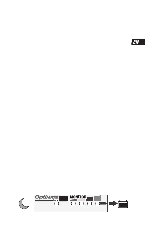 evening or cloud covers sun) the OptiMate Solar DUO controller changes to BATTERY MONITOR