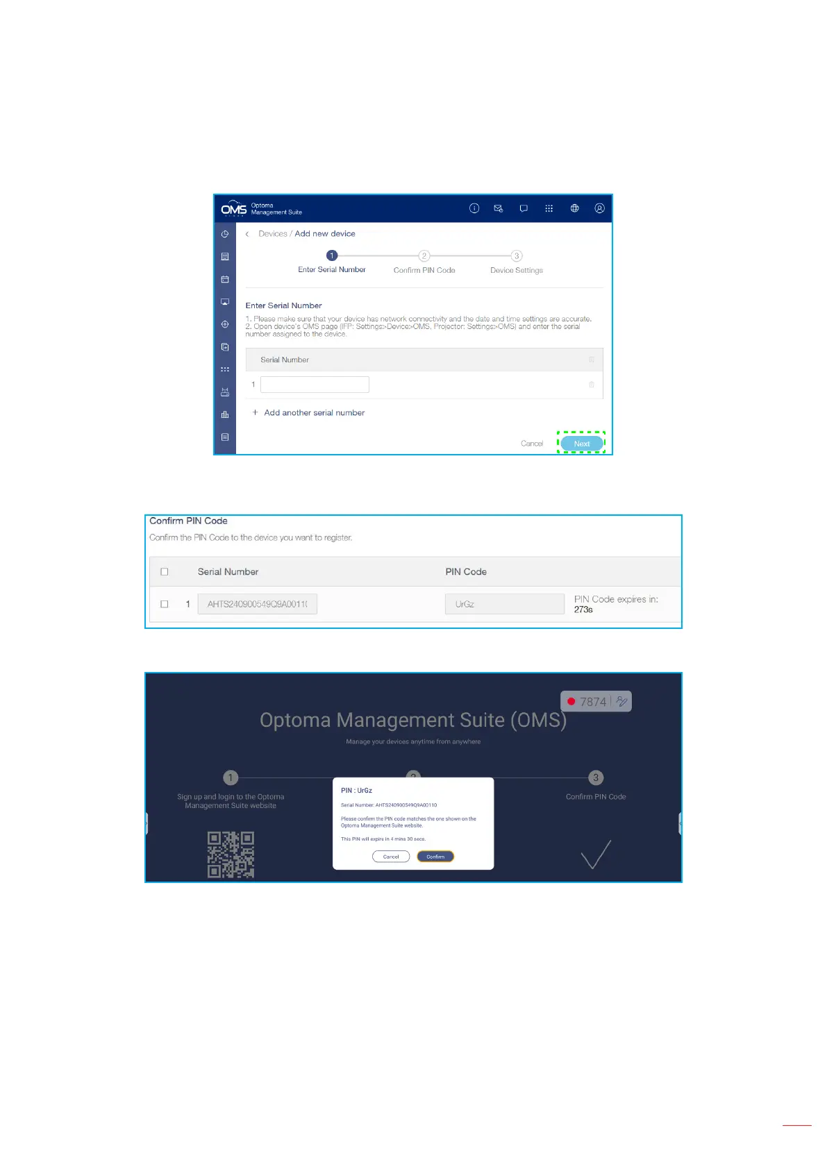 6. Enter the serial number from the Optoma Management Suite launcher page and click Next.