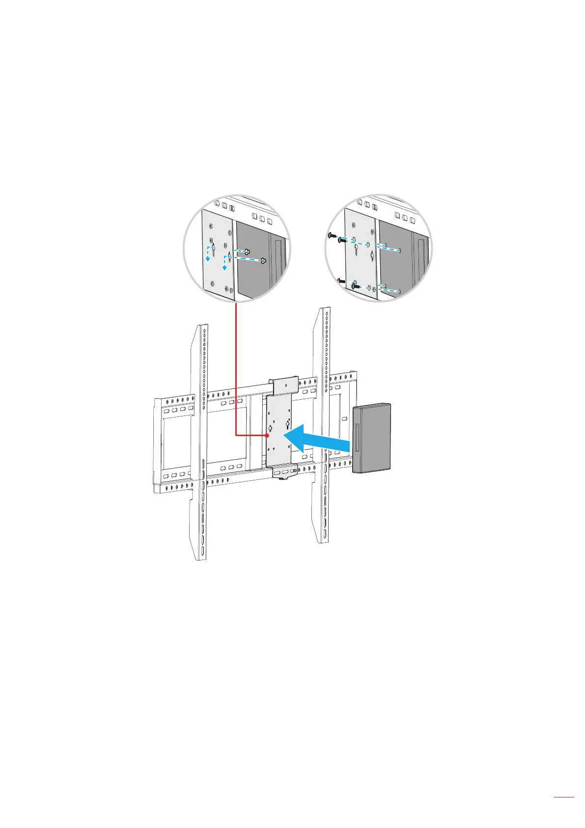 • Install the screws onto the mini computer, then align and hook the mini computer to the mini PC bracket.