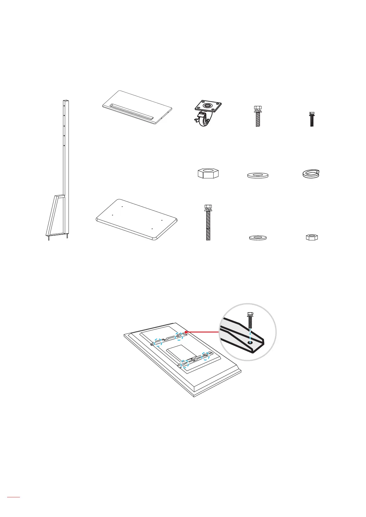 Stand pole (x2) Stand base (x1) Screw K (x4) Washer K1 (x4) Nut K2 (x4)