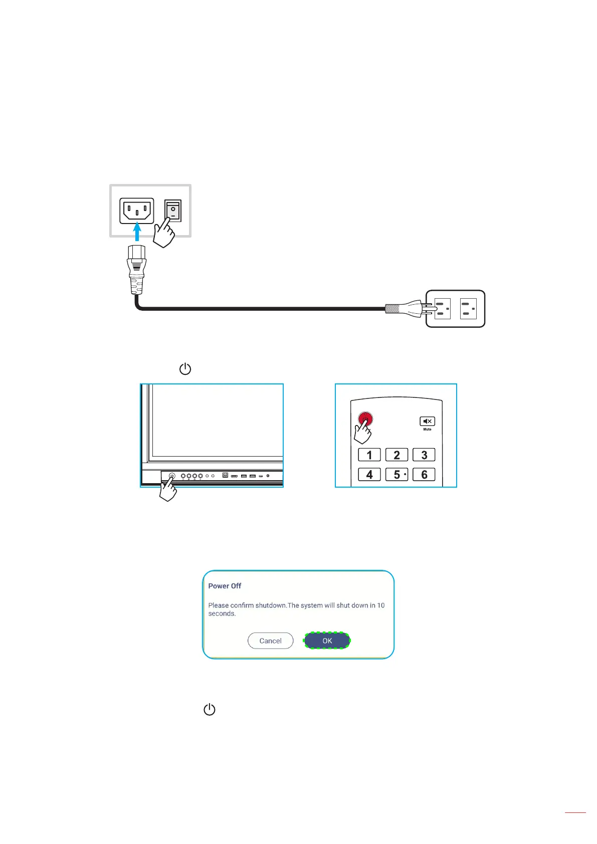Press the Power button for 5 seconds to turn off the IFP. Press OK at the prompt to turn it off immediately or wait